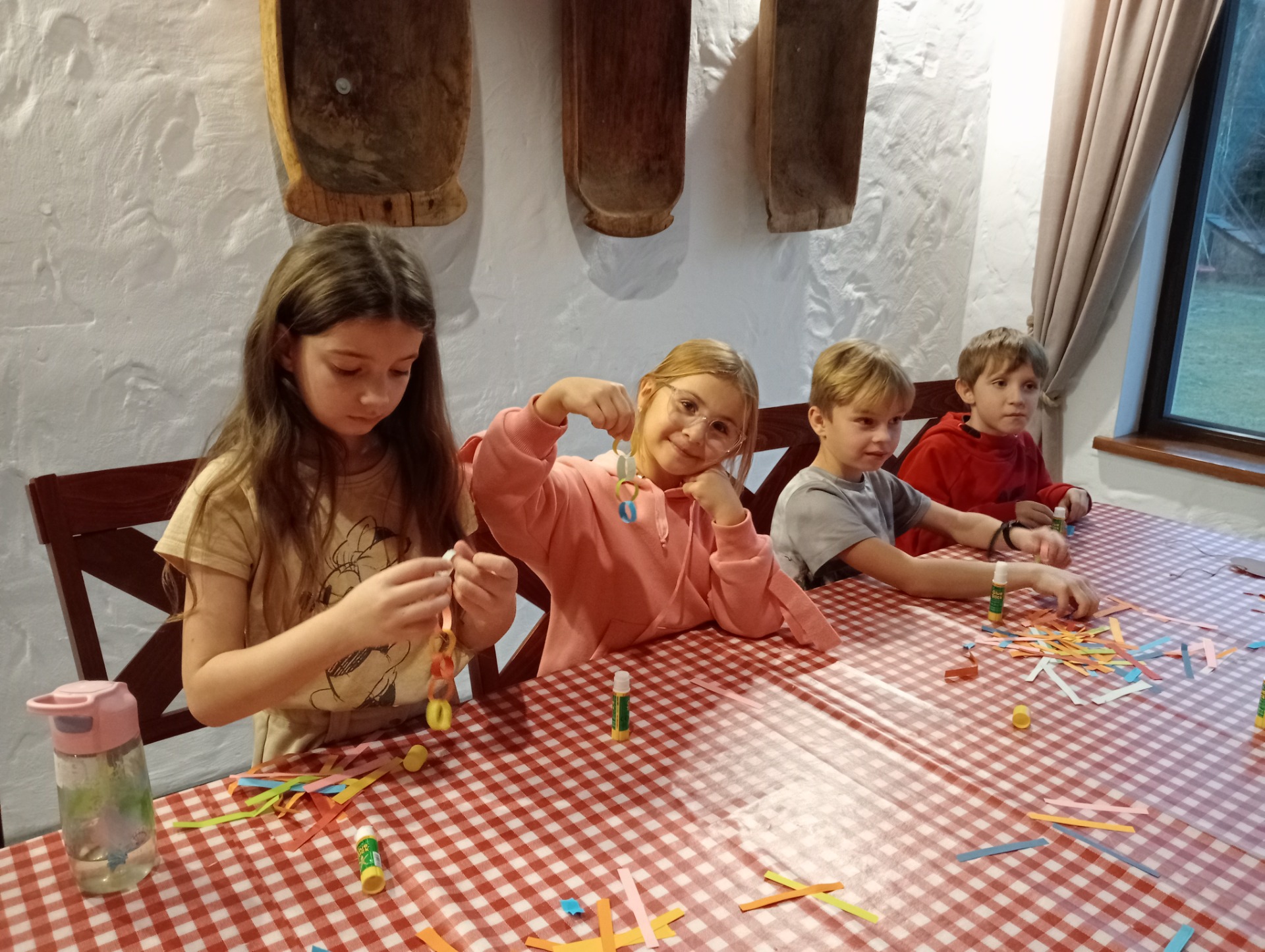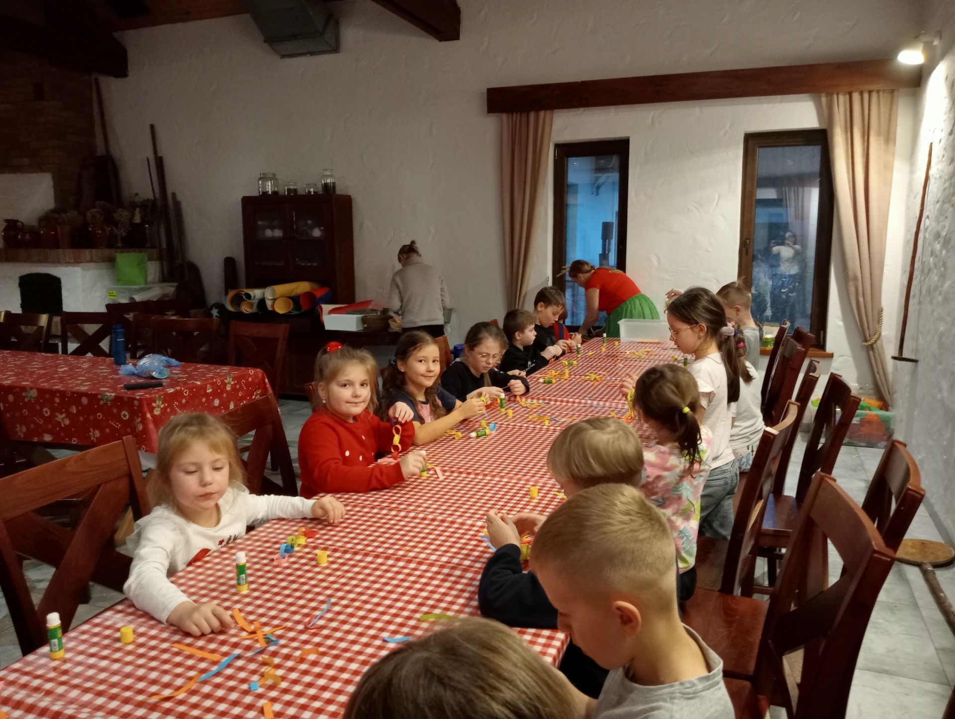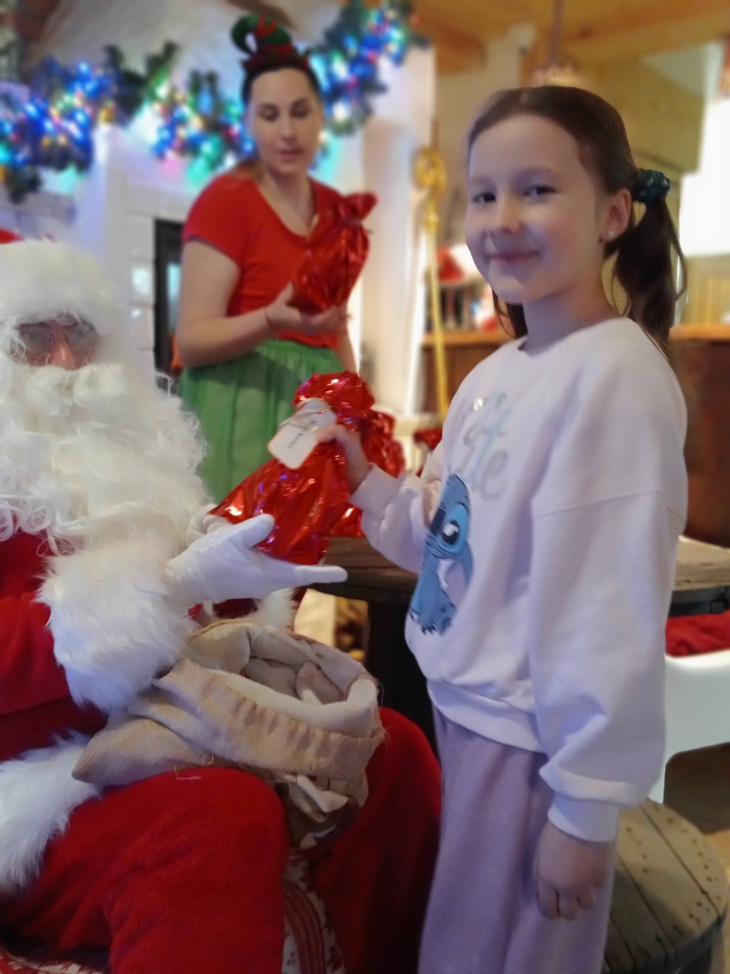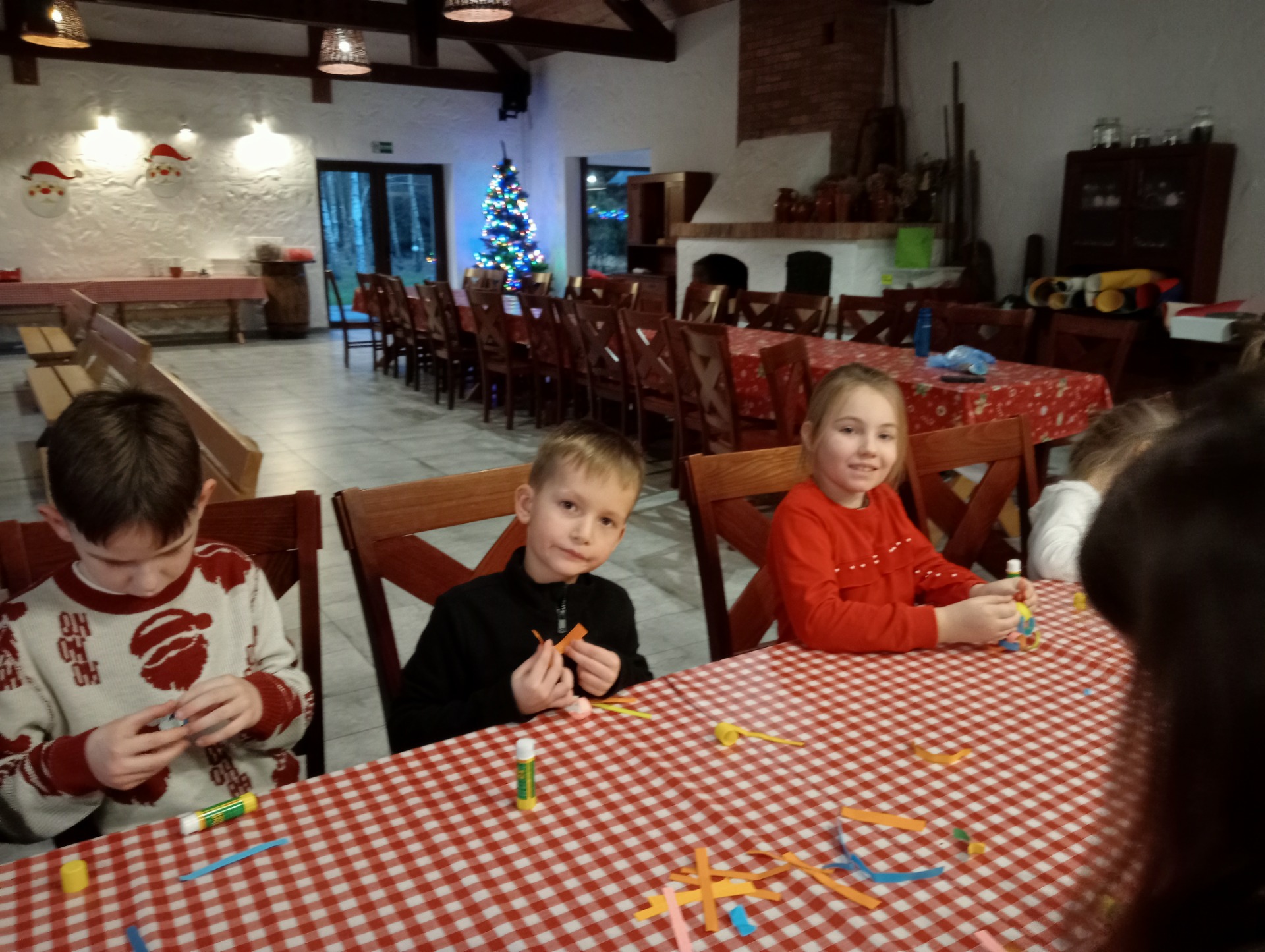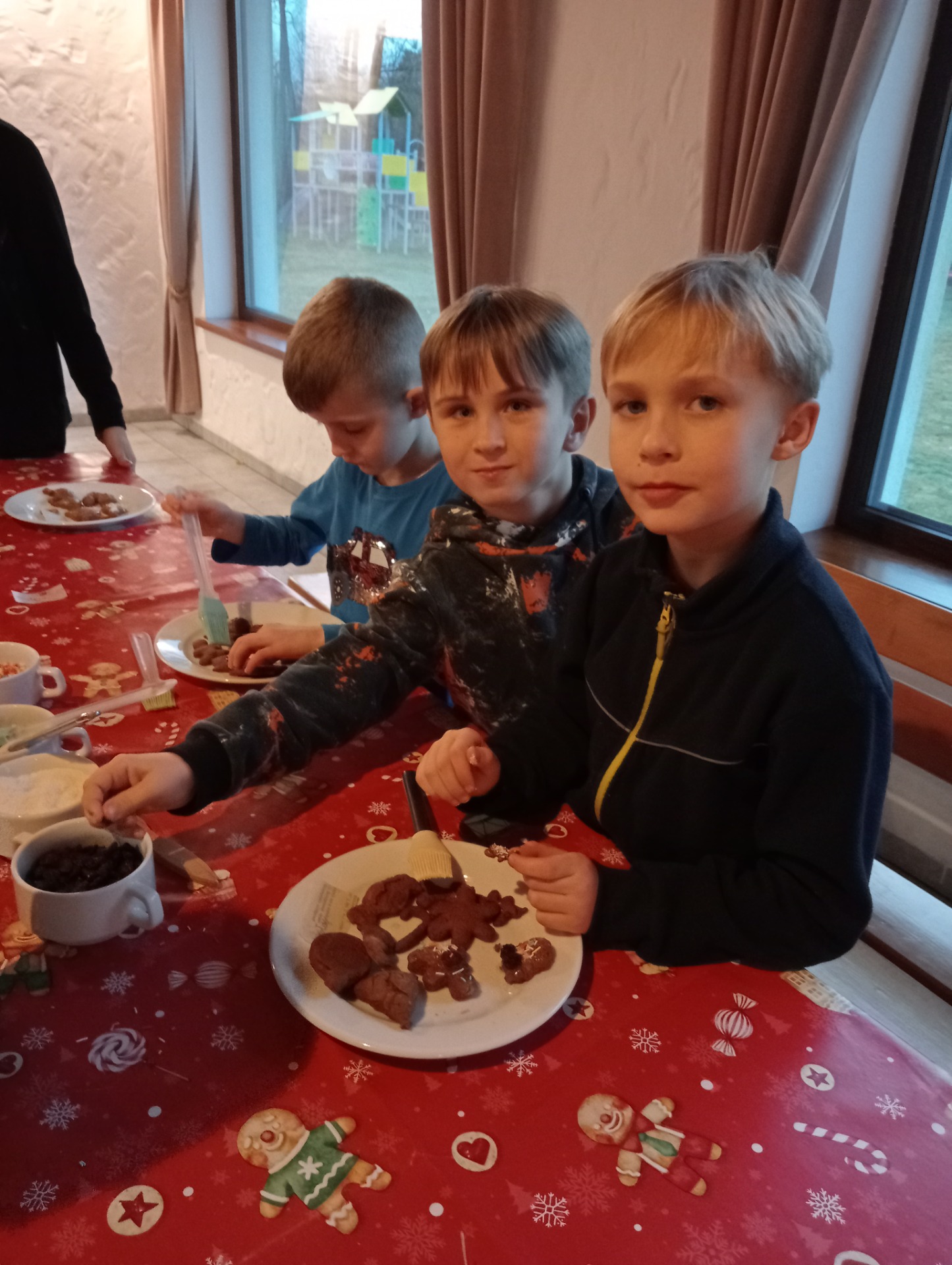 16 grudnia 2024r. uczniowie klasy 1a i 1 b odwiedzili Osadę Leśną Doboszówka, która obecnie zamieniła się w Wioskę Świętego Mikołaja. Po przybyciu na miejsce czekało na nas dużo atrakcji. Każde dziecko miało okazję wykonać świąteczne pierniczki, a po upieczeniu ozdobić je lukrem i bakaliami. Podczas warsztatów plastycznych tworzyliśmy ozdoby choinkowe – pawie oczka i łańcuch. Było też wspólne kolędowanie i nauka piosenki o Mikołaju. Z wielkim zaangażowaniem wszyscy brali udział w zabawach ruchowych przy muzyce oraz zajęciach z elementami współzawodnictwa. Prowadzone przez Śnieżynkę zajęcia były okazją do poznania przez dzieci tradycji związanych z Bożym Narodzeniem. Ogromną radość sprawił dzieciom Mikołaj, który wręczył wszystkim prezenty. Była również wizyta w mini zoo i karmienie mieszkających tam zwierząt. To był dzień pełen wrażeń.