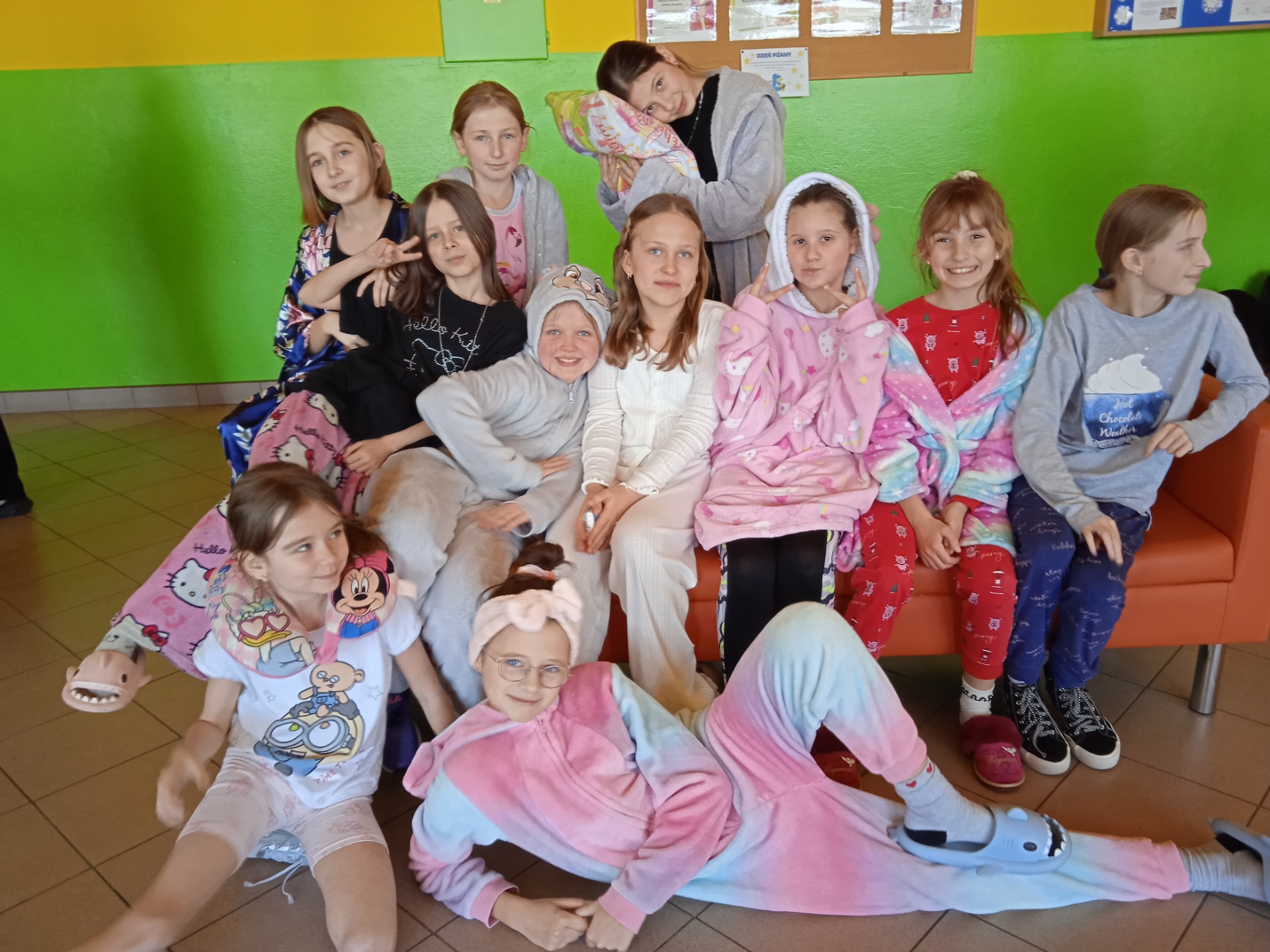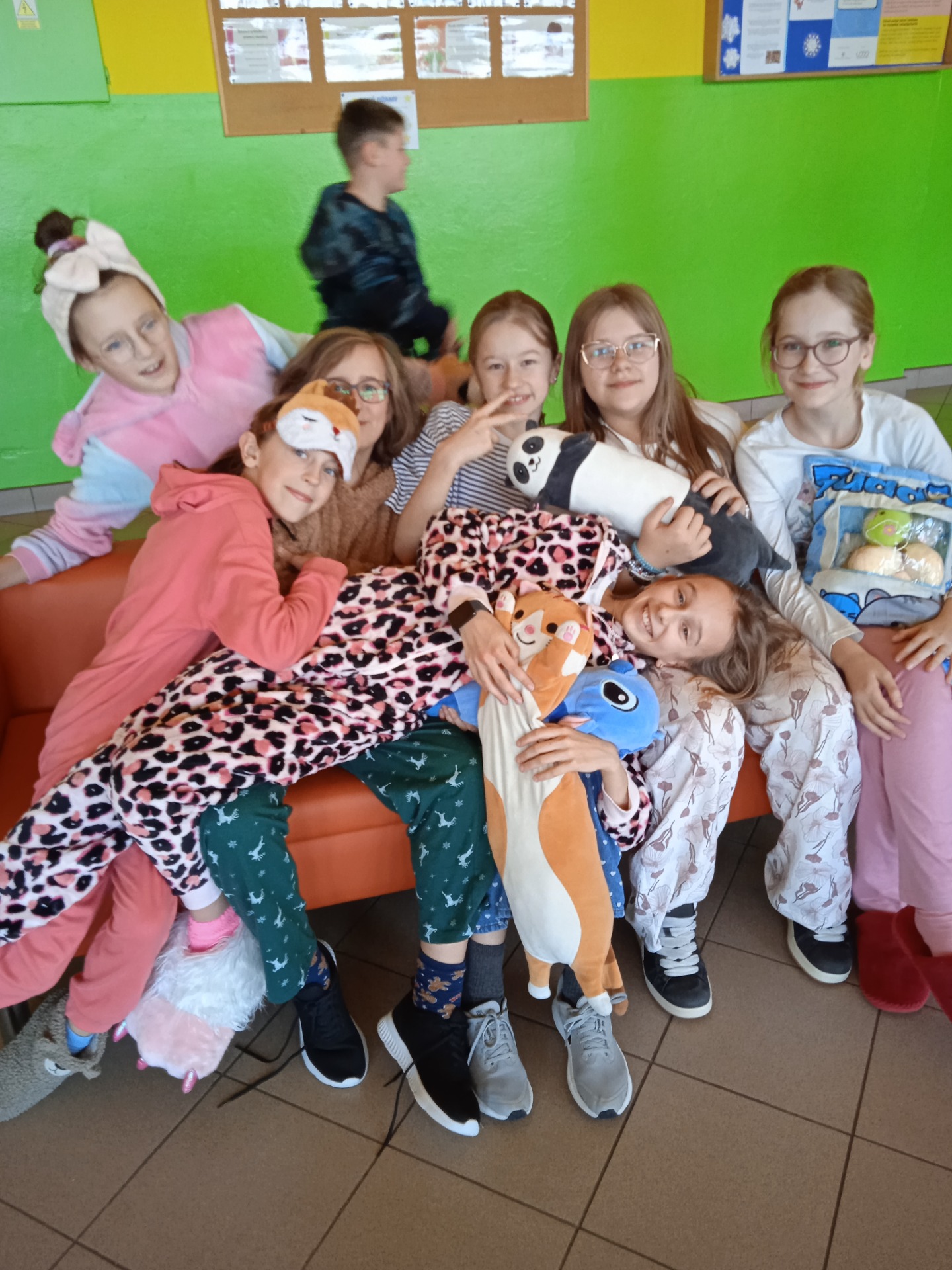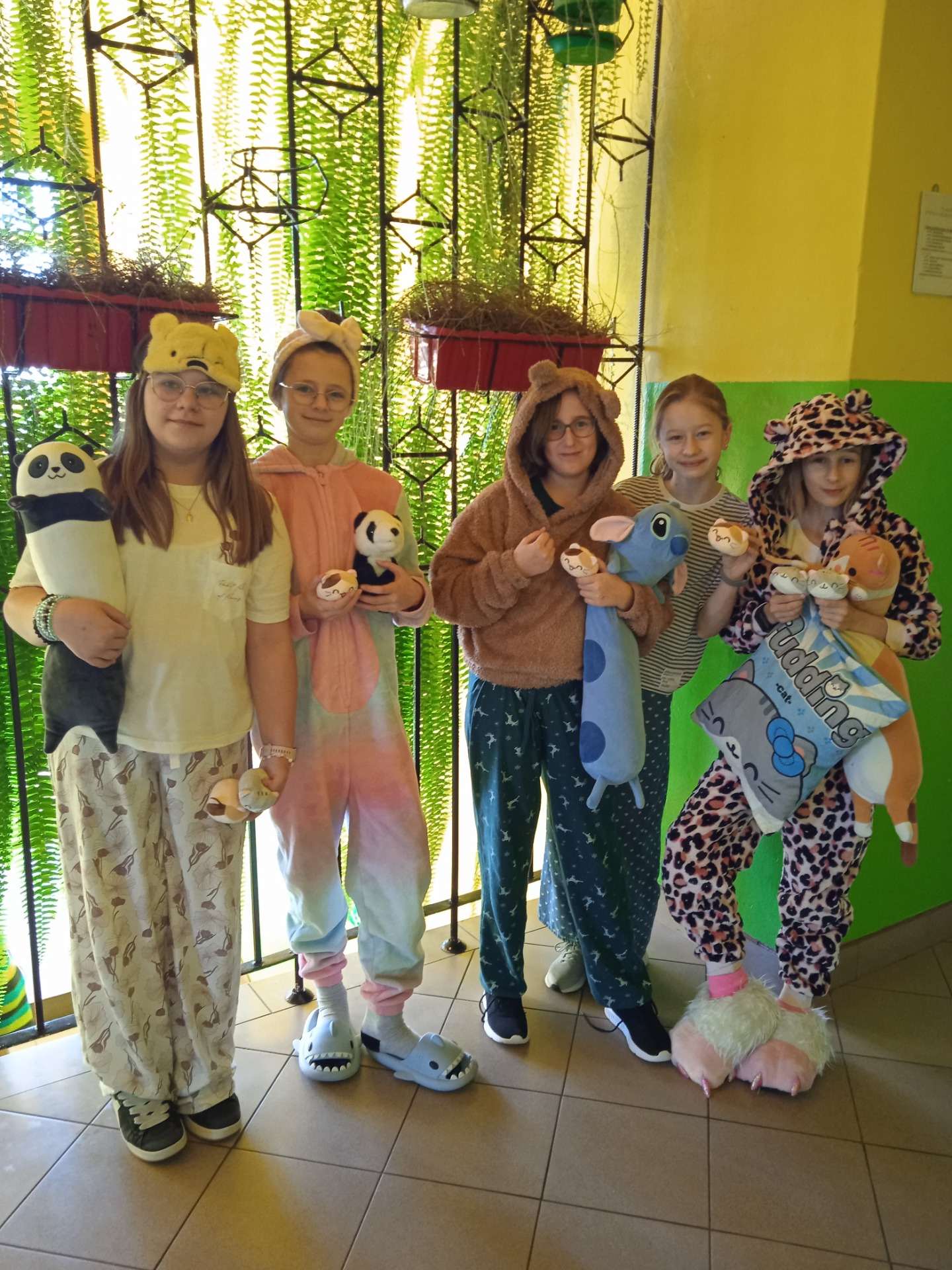 W miniony poniedziałek, tj. 27stycznia 2025 roku, na korytarzach szkolnych można było zauważyć wielu uczniów i przedszkolaków w niecodziennych strojach- w piżamach, szlafrokach, domowych kapciach. Widok ten wywołał uśmiech na wielu twarzach. Pragniemy jednak przypomnieć, że przedsięwzięcie to miało na celu wyrazić solidarność z dziećmi przebywającymi na długotrwałym leczeniu w oddziałach szpitalnych. Choroba zmusiła je do codziennego korzystania z piżam. Rozumiemy ich tęsknotę za powrotem do „normalności”. Życzymy wszystkim chorym dzieciom szybkiego powrotu do zdrowia. Samorząd szkolny