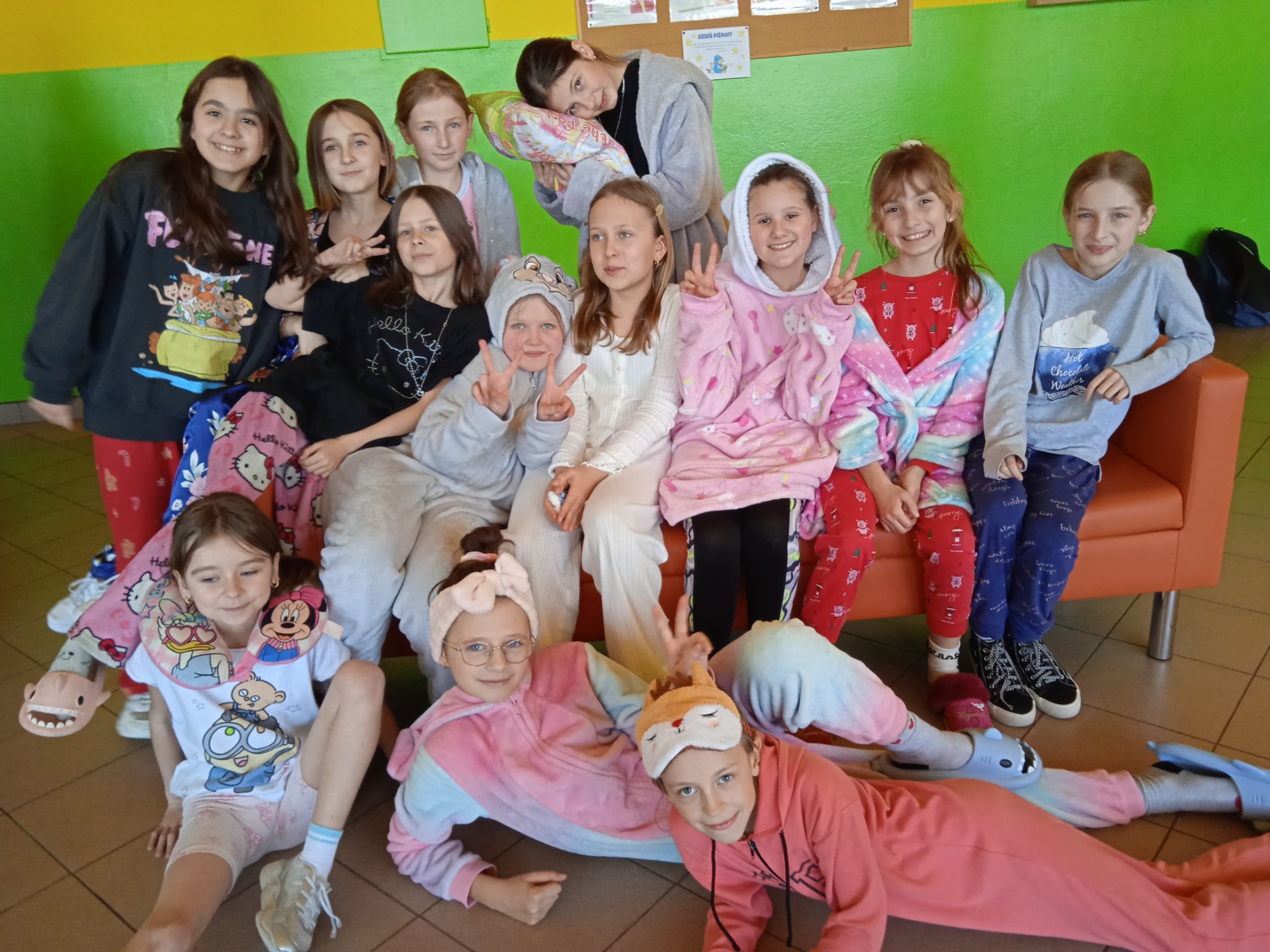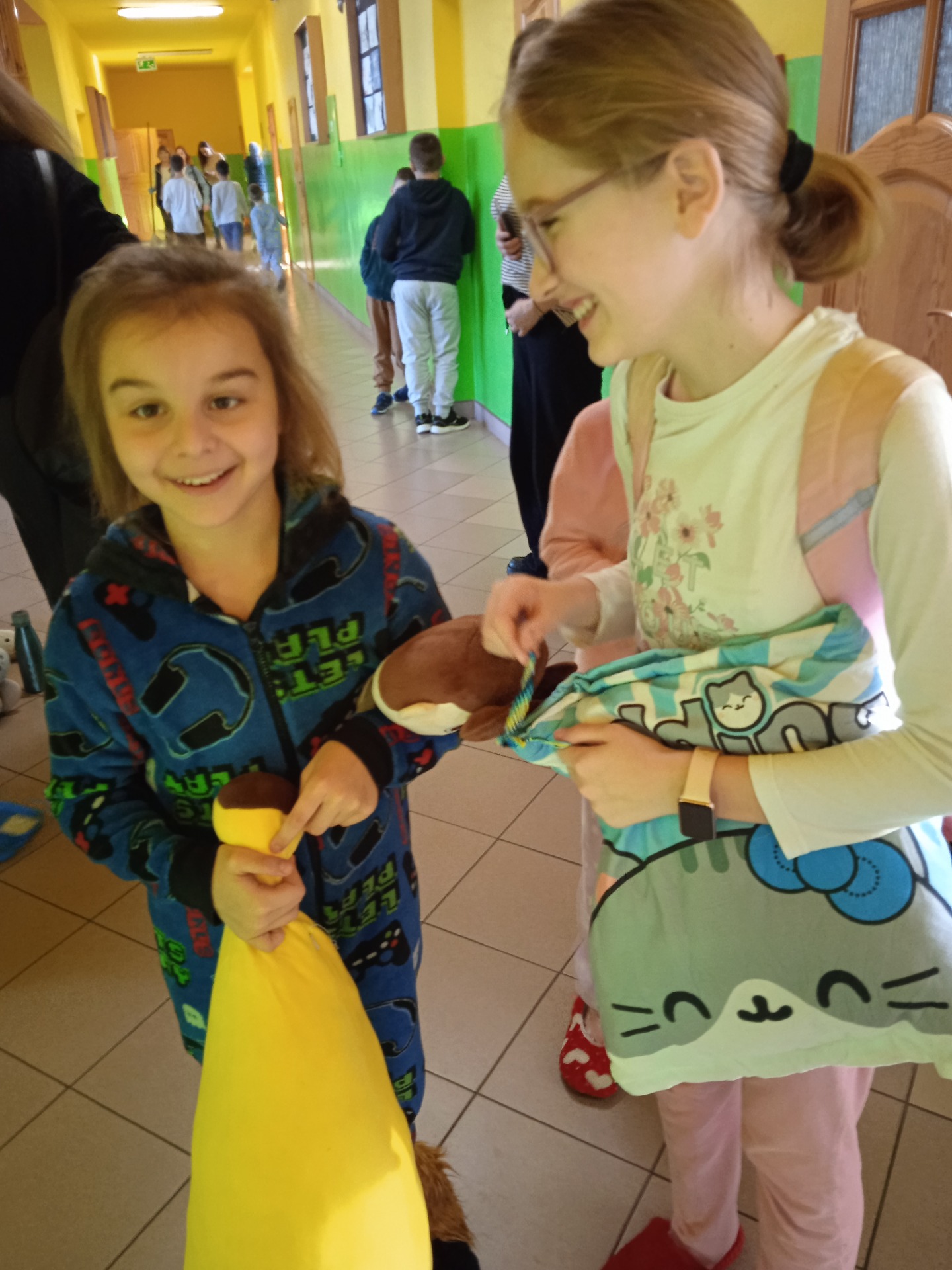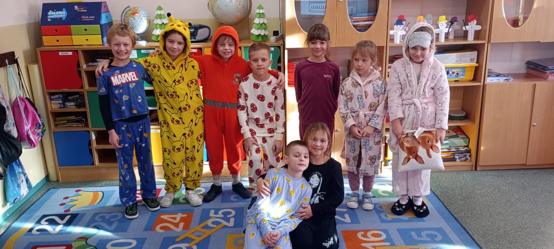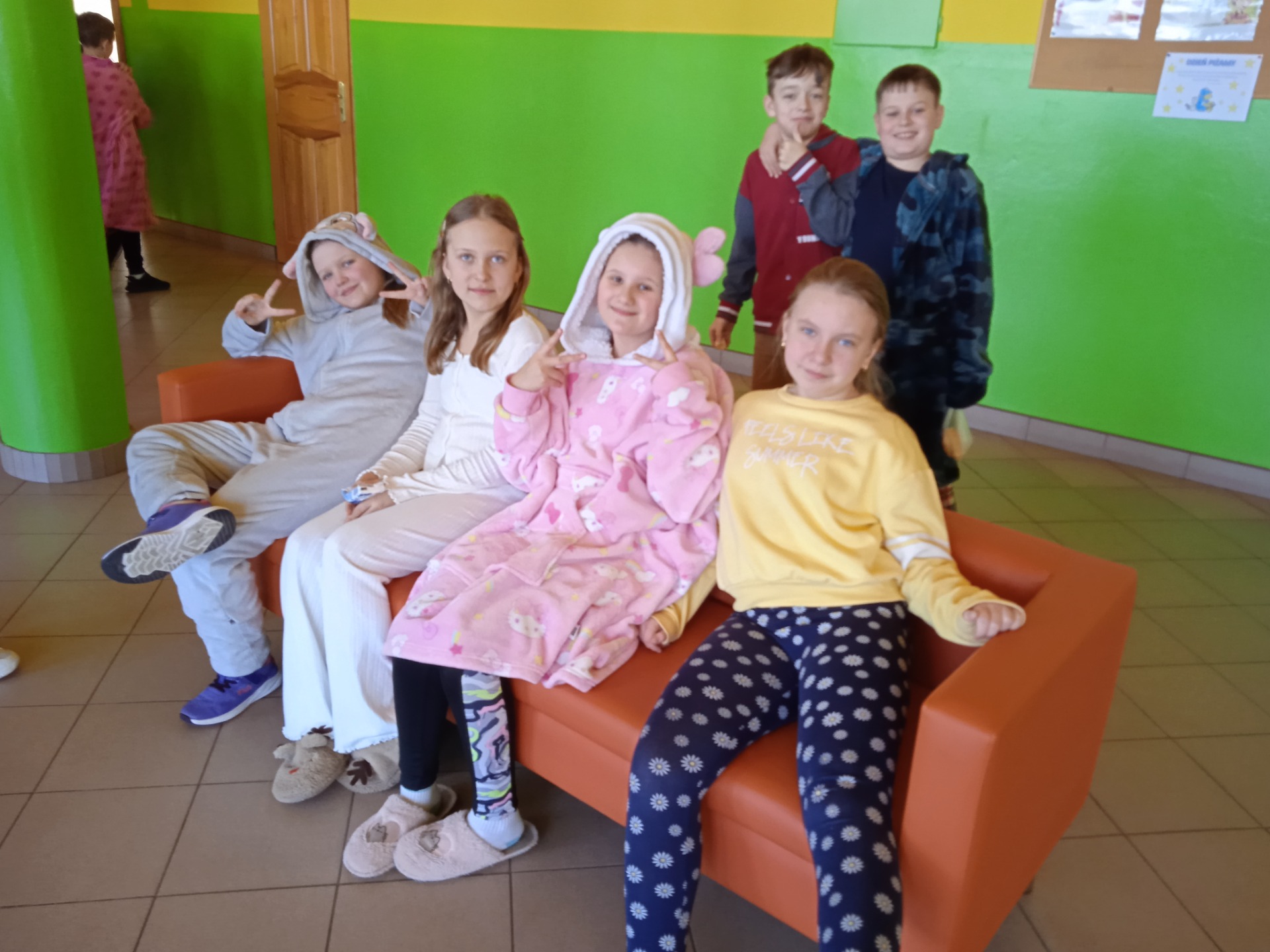 W miniony poniedziałek, tj. 27stycznia 2025 roku, na korytarzach szkolnych można było zauważyć wielu uczniów i przedszkolaków w niecodziennych strojach- w piżamach, szlafrokach, domowych kapciach. Widok ten wywołał uśmiech na wielu twarzach. Pragniemy jednak przypomnieć, że przedsięwzięcie to miało na celu wyrazić solidarność z dziećmi przebywającymi na długotrwałym leczeniu w oddziałach szpitalnych. Choroba zmusiła je do codziennego korzystania z piżam. Rozumiemy ich tęsknotę za powrotem do „normalności”. Życzymy wszystkim chorym dzieciom szybkiego powrotu do zdrowia. Samorząd szkolny