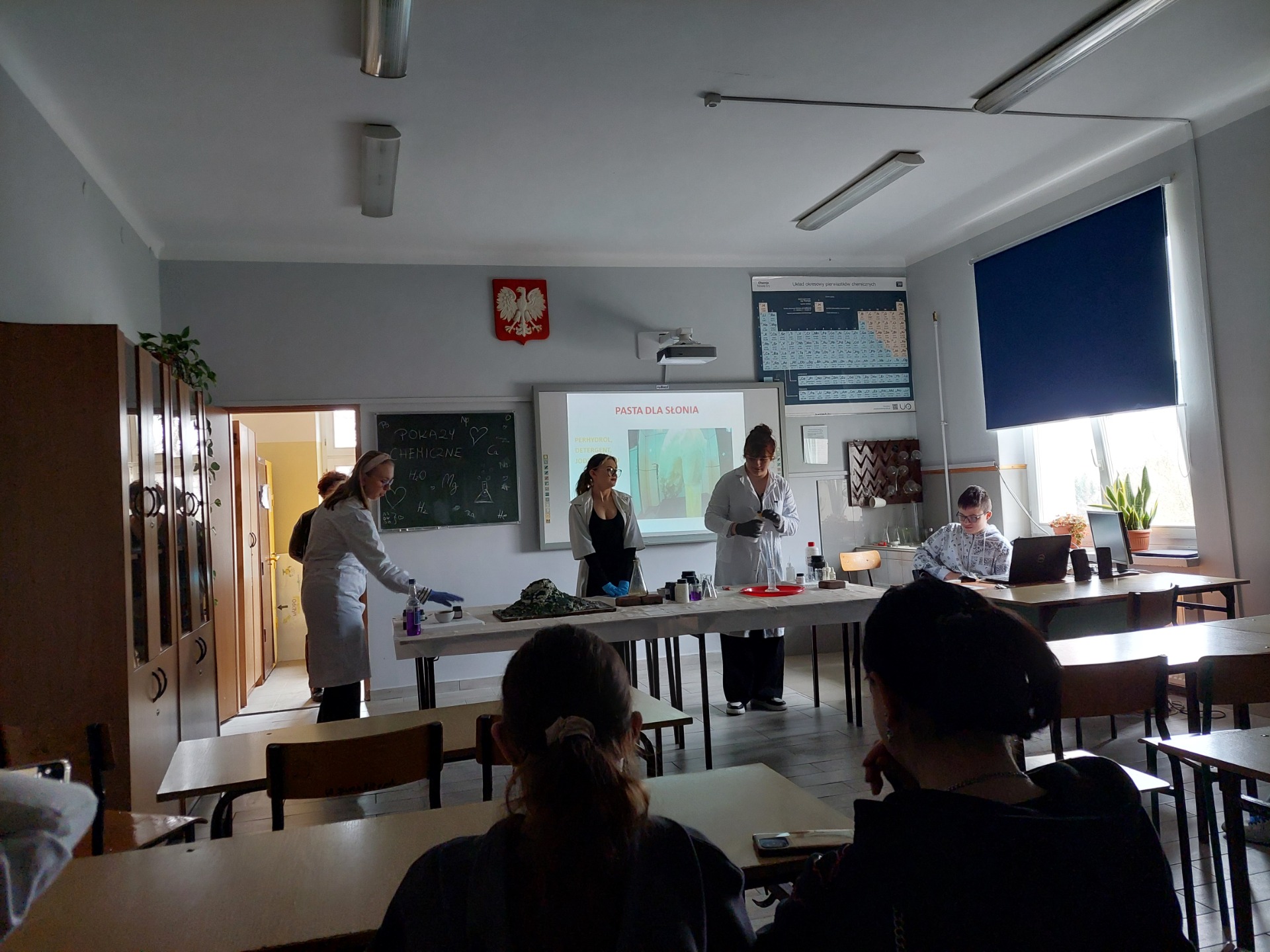 Pokazy na terenie szkoły "Sztuczna inteligencja" - warsztaty "Sztuka w Trzech aktach" "Siwy dym" - pokazy z chemii "Las wiosną i walory turystyczne w Nadleśnictwie Gościeradów" "Drony w akcji" - pokazy "Geograficzne rekordy" - warsztaty Liczba pi i skojarzenia literacko - poetyckie Poczęstunek Międzynarodowe spotkania - Armenia i Ukraina