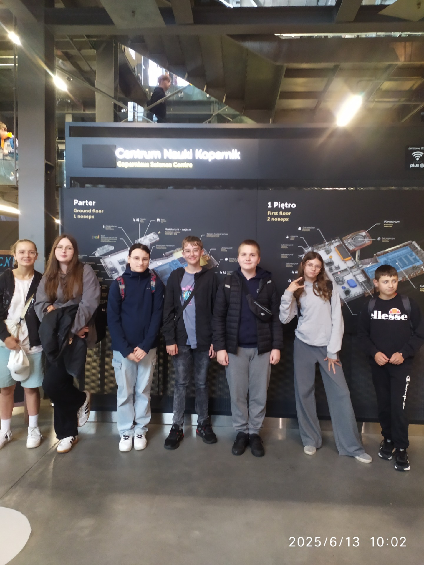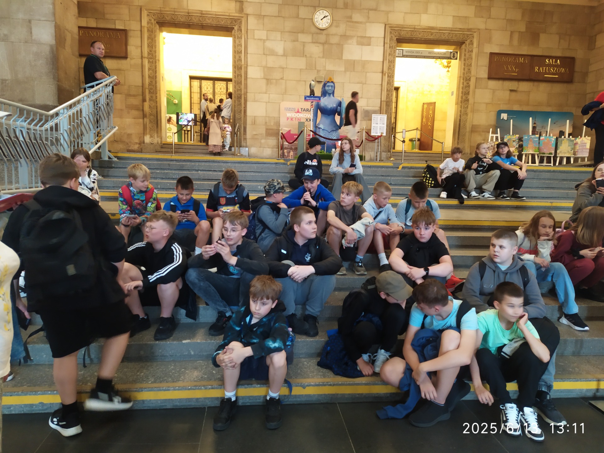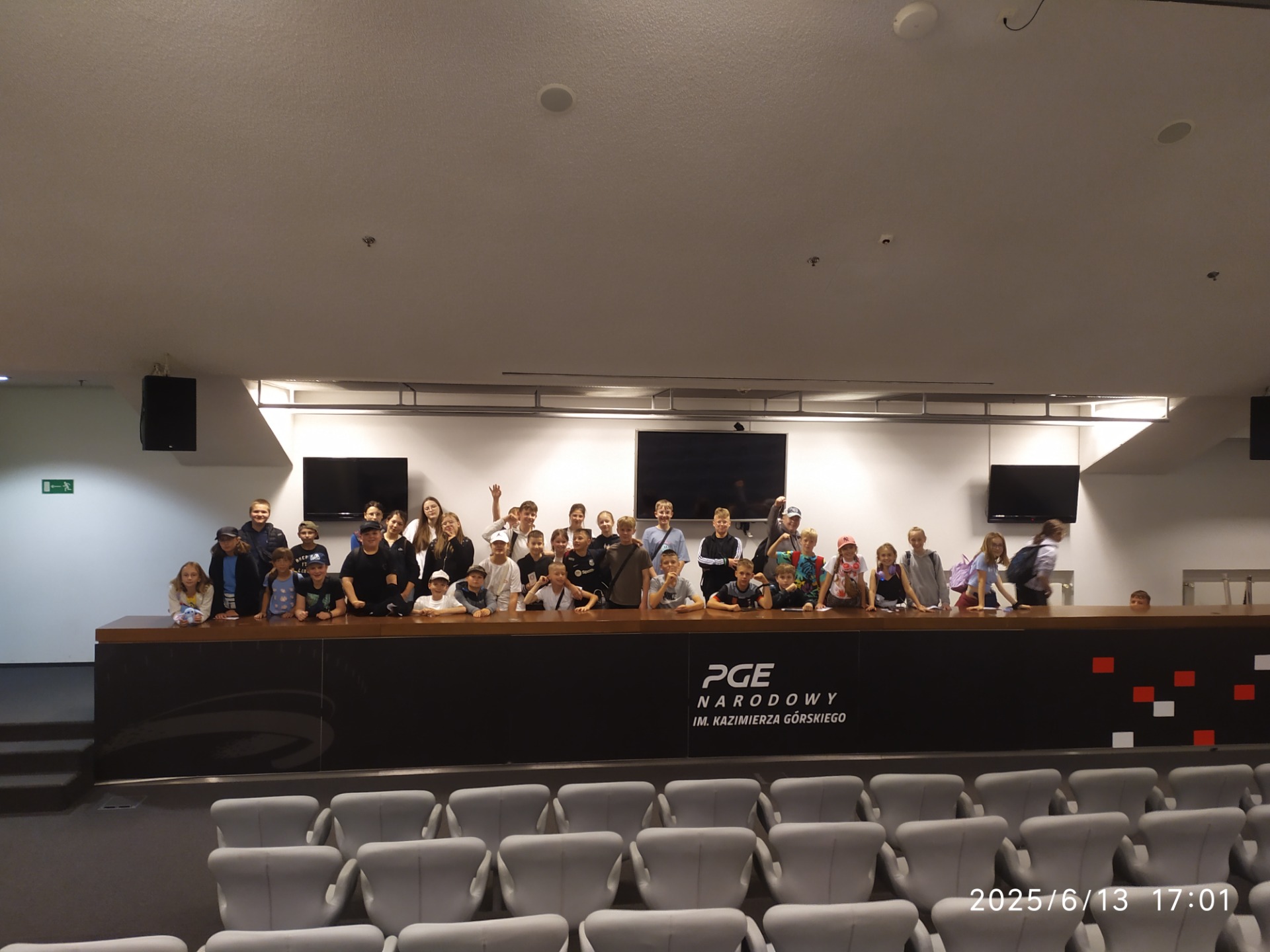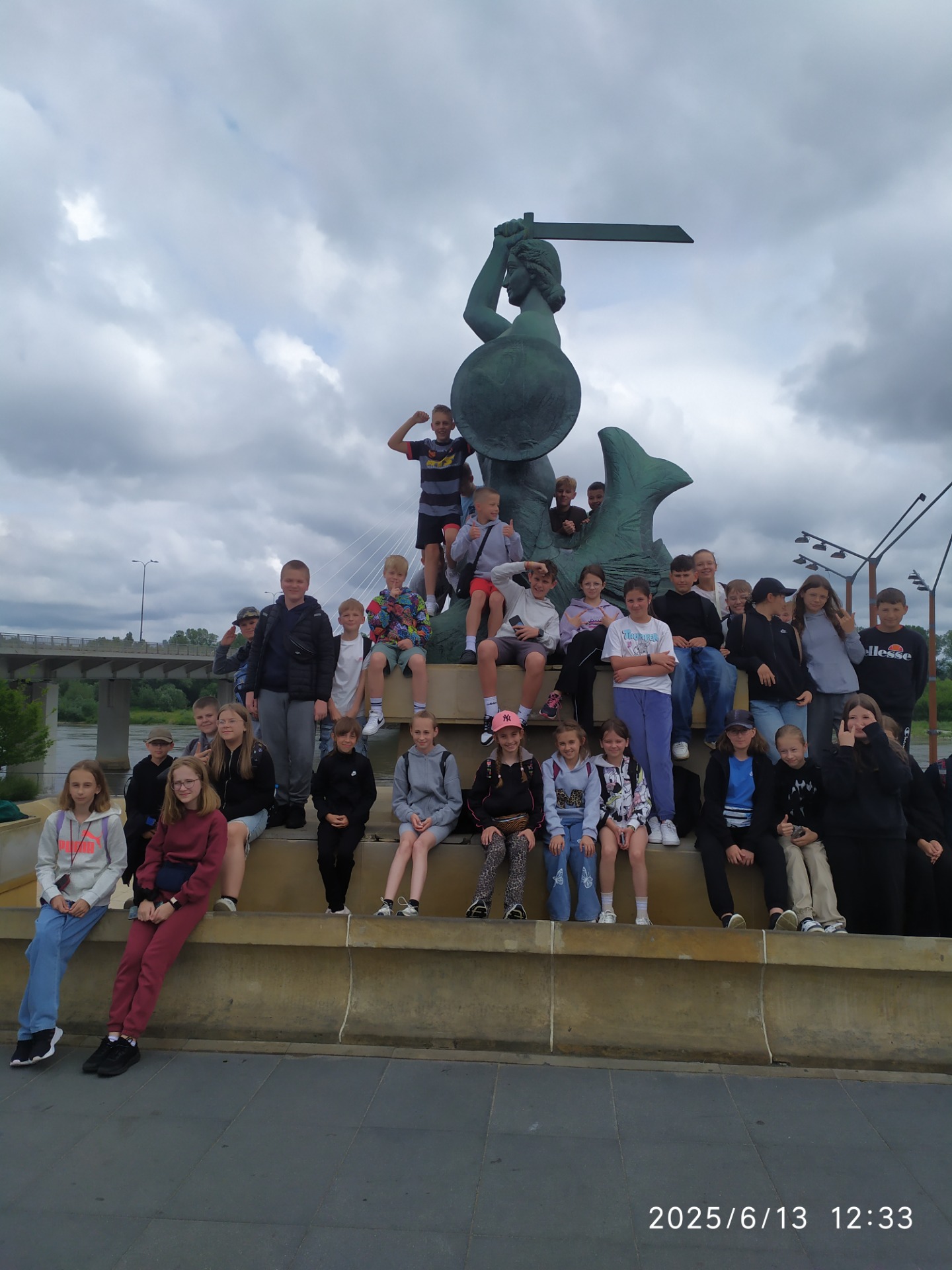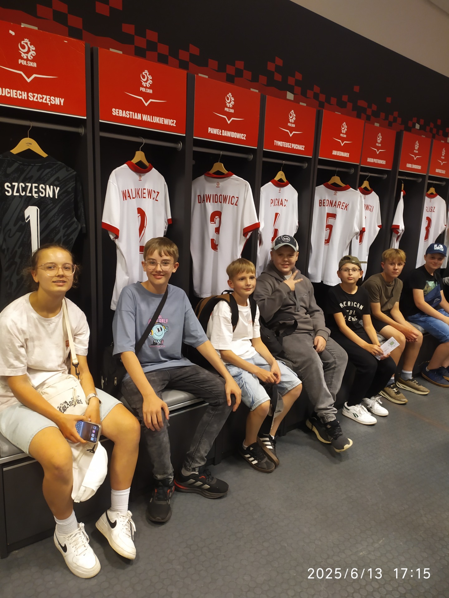 13 czerwca br. roku uczniowie z klasy IV, V i VI naszej szkoły wraz z opiekunami: panią M. Filipczak, panią T. Skrzypek i panią M. Trela, wyruszyli na wycieczkę do stolicy Polski – Warszawy. Celem wyprawy było poznanie najważniejszych miejsc związanych z historią, kulturą oraz współczesnym życiem miasta. Program był intensywny, ale pełen ciekawych atrakcji i niezapomnianych przeżyć. Pierwszym punktem naszej wycieczki było Centrum Nauki Kopernik – miejsce, które zachwyciło nas interaktywnymi wystawami i eksperymentami. Każdy mógł samodzielnie sprawdzić prawa fizyki, zbudować robota, przeprowadzić doświadczenia chemiczne i wiele więcej. To miejsce pokazało nam, że nauka może być naprawdę fascynująca. Po wyjściu z muzeum przejechaliśmy warszawskim metrem pod Pałac Kultury i Nauki. Windą wyjechaliśmy na 30 piętro i podziwialiśmy piękną panoramę stolicy z tarasu widokowego. Kolejnym punktem programu była wizyta na PGE Narodowym – największym stadionie w Polsce. Wybraliśmy trasę „Piłkarskie emocje”, która pozwoliła nam zobaczyć najważniejsze miejsca obiektu, takie jak szatnia reprezentacji Polski, Press Room czy płyta boiska. Dowiedzieliśmy się, jak wygląda organizacja meczów na tak dużą skalę i jakie wyzwania wiążą się z przygotowaniem takiego wydarzenia. Wycieczka do Warszawy była dla nas nie tylko świetną okazją do integracji, ale przede wszystkim do poznania historii i współczesności naszej stolicy. Dzięki tej podróży zyskaliśmy nowe spojrzenie na miasto, które tętni życiem, a jednocześnie niesie w sobie bogate dziedzictwo narodowe. Z pewnością długo będziemy wspominać ten wyjątkowy dzień.
