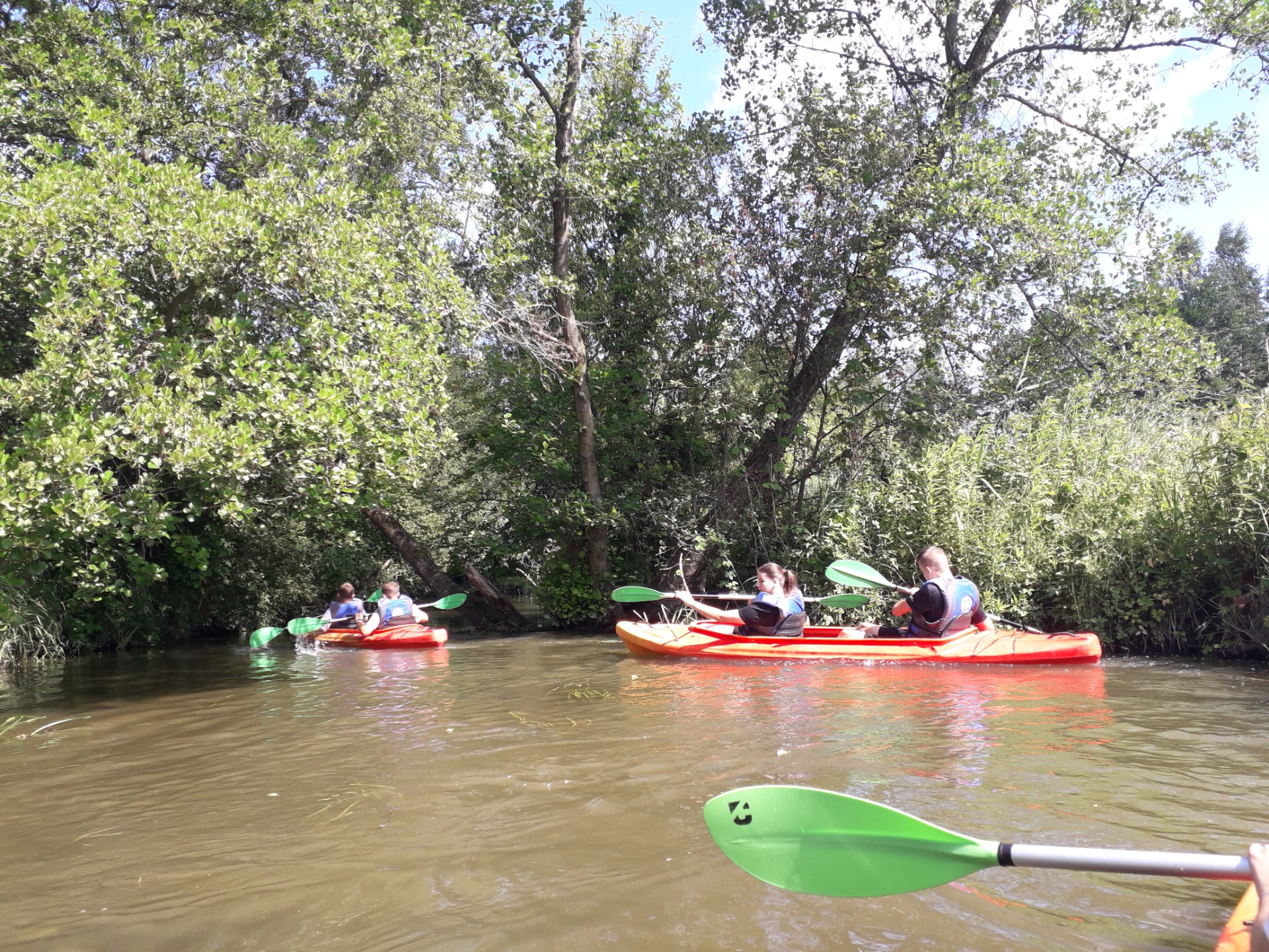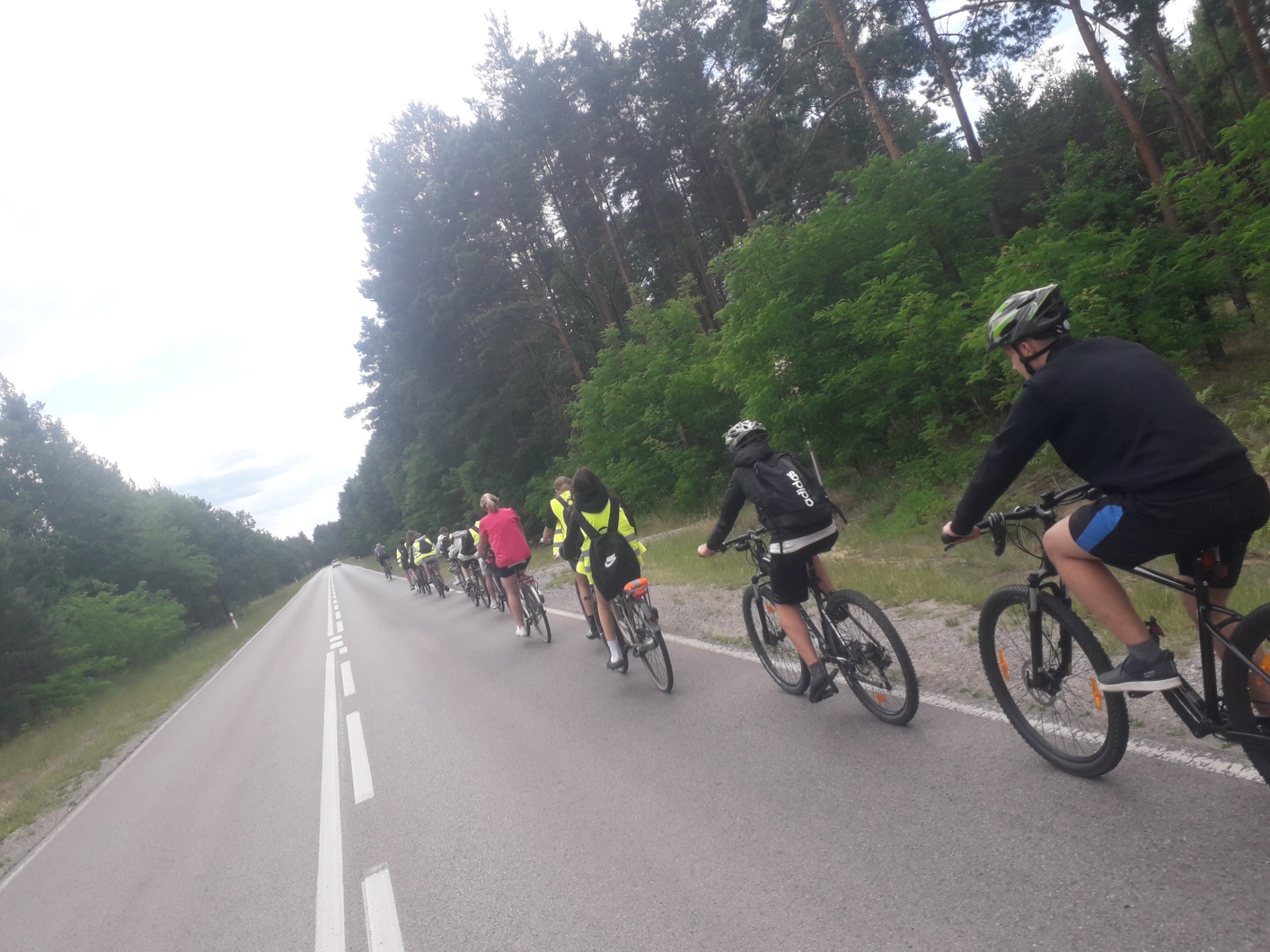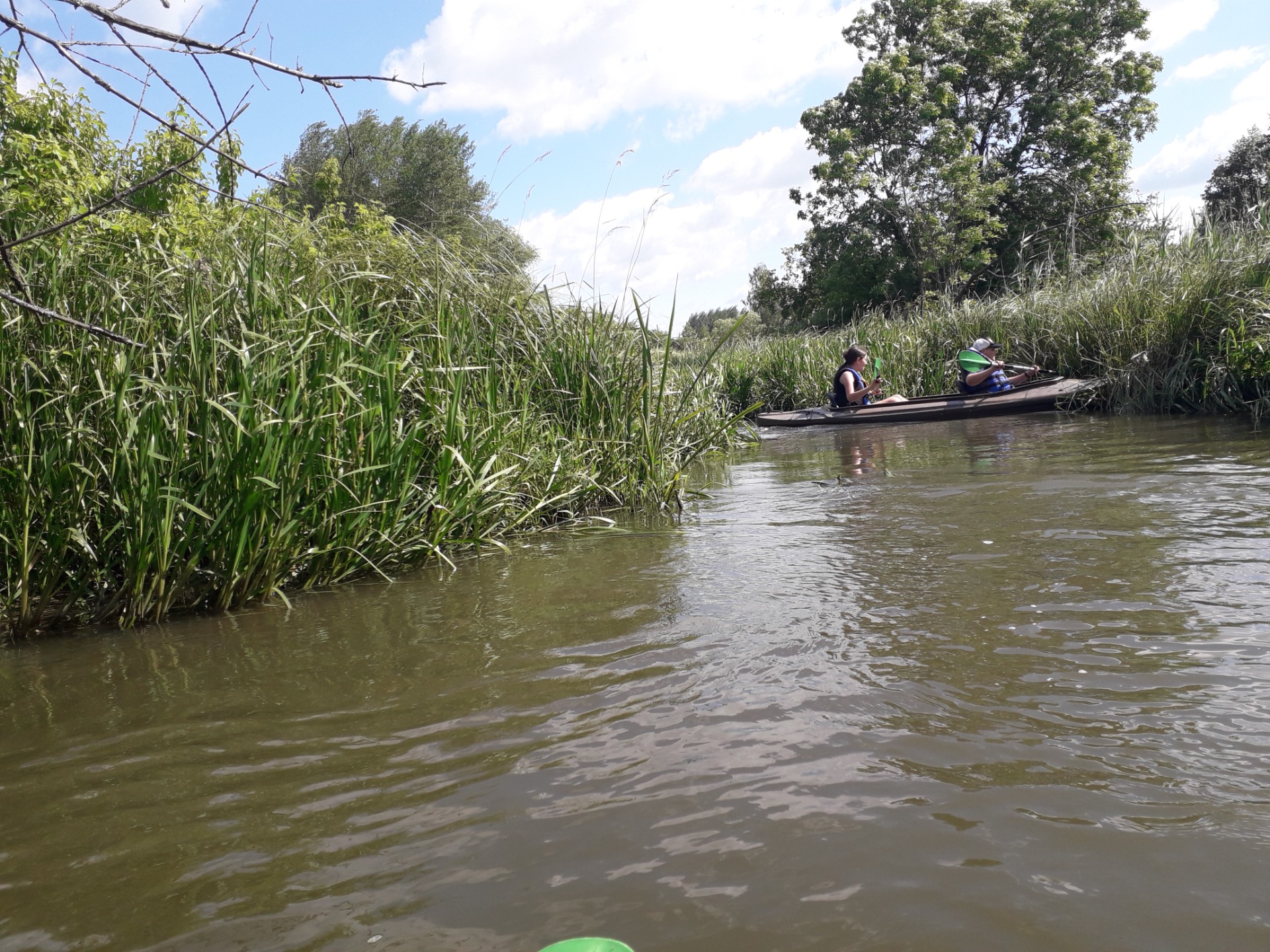 Dnia 25 czerwca 2025 roku klasa 7 wybrała się na wyjątkową wycieczkę, której główną atrakcją był spływ kajakowy rzeką Sanną. Wyjazd rozpoczęliśmy wcześnie rano – zebraliśmy się przed szkołą, skąd cała klasa wyruszyła na rowerach do Zaklikowa. Trasa rowerowa była malownicza i niezbyt wymagająca, a pogoda dopisywała – świeciło słońce, temperatura była przyjemna, a lekki wiatr umilał podróż. Po dotarciu do Zaklikowa zrobiliśmy krótką przerwę, a następnie spotkaliśmy się z instruktorem, który przeprowadził dla nas krótki kurs nauki obsługi kajaka. Dowiedzieliśmy się, jak prawidłowo wsiadać i wysiadać z kajaka, jak trzymać wiosło oraz jak manewrować na wodzie. Instruktor omówił także zasady bezpieczeństwa i sposoby reagowania w przypadku wywrotki. Dzięki temu czuliśmy się pewniej, zwłaszcza ci, którzy pierwszy raz mieli styczność z kajakami. Po szkoleniu rozpoczęliśmy spływ kajakowy. Trasa prowadziła z Zaklikowa do miejscowości Irena i obejmowała odcinek pełen zakrętów, przeszkód i pięknych widoków. Płynęło się bardzo przyjemnie, choć nie obyło się bez niespodzianek. Po około godzinie napotkaliśmy zwalone drzewo, które blokowało koryto rzeki. Konieczne było wyjście z kajaków i ich przeniesienie. Towarzyszyło temu wiele śmiechu, szczególnie gdy jedna z naszych koleżanek poślizgnęła się i wpadła do wody, gubiąc przy tym jednego klapka. Po krótkim relaksie wróciliśmy do Zaklikowa, skąd ponownie wyruszyliśmy na rowerach w drogę powrotną do domu. Cała wycieczka była niezwykle udana – dopisała pogoda, humory i atmosfera w grupie. Połączenie rowerowej wyprawy z nauką i spływem kajakowym okazało się świetnym pomysłem na aktywne zakończenie roku szkolnego. Te wspólne przygody z pewnością na długo zostaną w naszej pamięci.