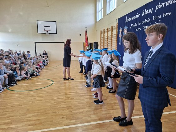 W dniu 14.10 2025r w ZS w Lipie odbył się uroczysty apel z okazji Dnia Komisji Edukacji Narodowej . Główną rolę podczas akademii odegrali uczniowie klasy I, którzy złożyli uroczyste Ślubowanie i dołączyli do braci uczniowskie naszej szkoły. Dwudziestu pierwszoklasistów zaprezentowało swój program artystyczny, recytując wiersze i śpiewając piosenki. Nie obyło się również bez ,,egzaminu” z którym poradzili sobie śpiewająco. Po przedstawieniu części artystycznej złożyli na sztandar Zespołu Szkół im.,, Szarych Szeregów” w Lipie uroczyste ślubowanie, a następnie zostali pasowani na uczniów i otrzymali pamiątkowe dyplomy. Kolejnym punktem uroczystości z okazji Dnia KEN były życzenia dedykowane wszystkim nauczycielom , pracownikom szkoły i przedszkola . Część artystyczną przygotowali uczniowie z klasy VI. Były również podziękowania dla pracowników szkoły oraz przedszkola w postaci nagród dyrektora szkoły i burmistrza gminy Zaklikowa. Uroczystość przygotowały : p. Beata Chmielewska i p. Anna Sobień.