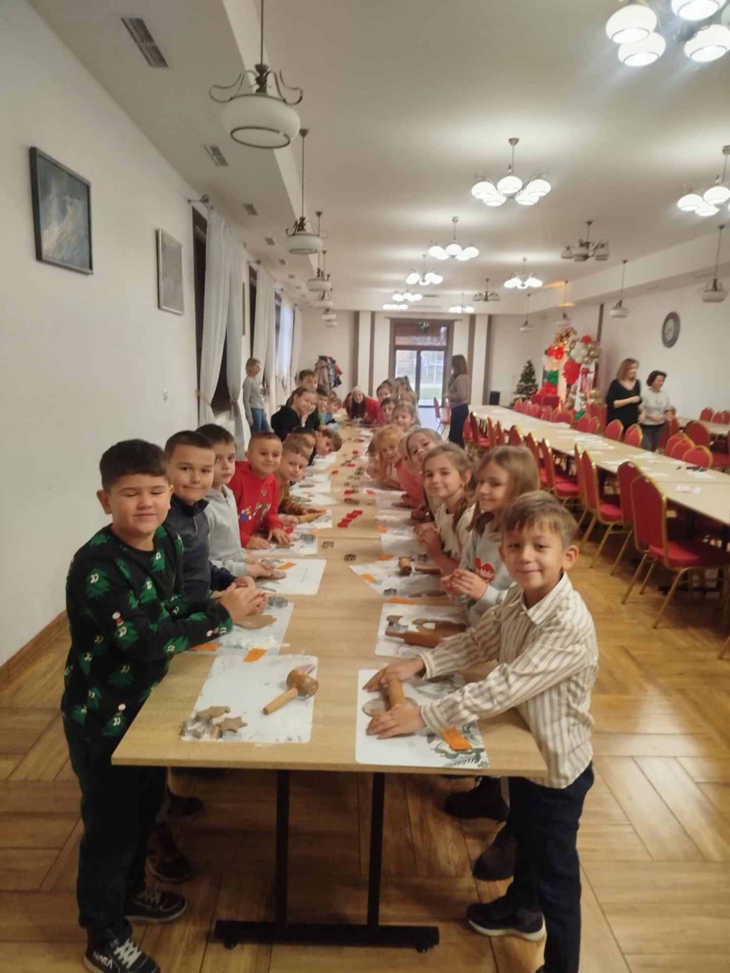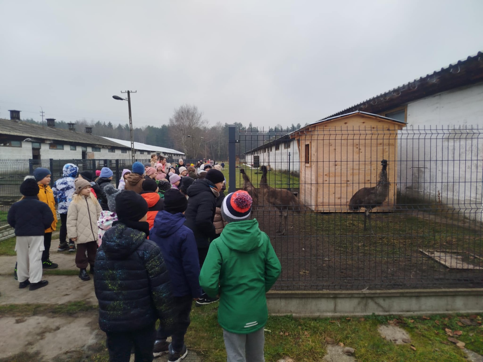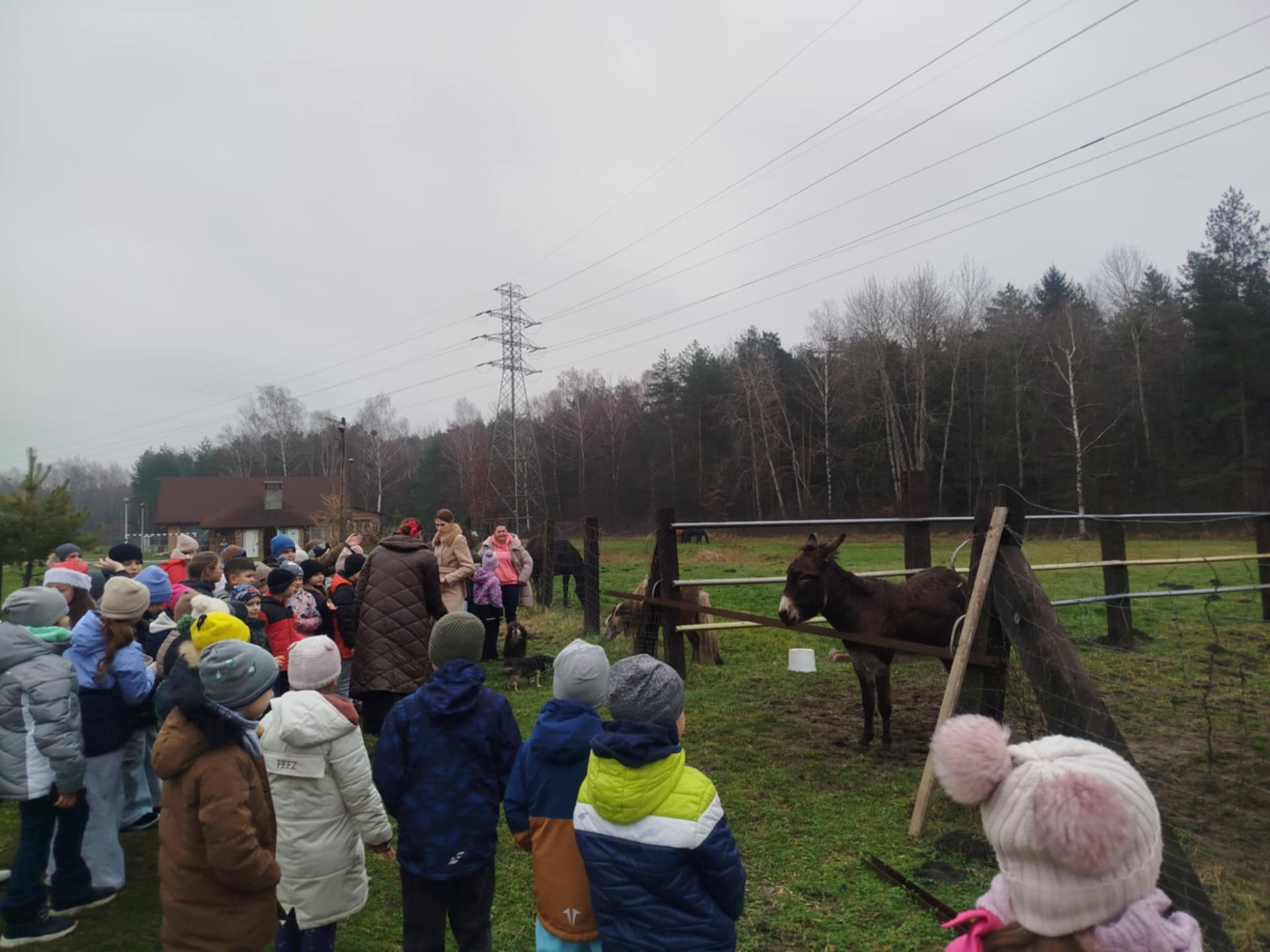 W dniu 2 grudnia uczniowie klas 1-3 Szkoły Podstawowej, pod opieką wychowawców udali się do Gospodarstwa Agroturystycznego „Madejówka” w Obojni. Pani Agnieszka – właścicielka, powitała wszystkich serdecznie i opowiedziała dzieciom o tradycjach i zwyczajach zbliżających się Świąt Bożego Narodzenia oraz przeprowadziła quiz sprawdzający wiedzę dzieci, na temat zbliżających się świąt. Następnie odbyły się warsztaty świąteczne, dzieci pisały listy do Mikołaja oraz przygotowywały pierniki, dekorując je kolorowymi posypkami i lukrem. Pani Agnieszka, zaprosiła dzieci na spacer po Zagrodzie. Miały wówczas okazję zobaczyć i nakarmić konie, kozy, strusie oraz małe źrebaki. Wiele radości sprawił dzieciom Mikołaj, który wręczył każdemu prezent w postaci czekolady. Spotkanie z Mikołajem , to było wspólne kolędowanie w miłej atmosferze świątecznej. Kolejnym punktem programu , był poczęstunek ciastem i tradycyjnym pierogami. Zajęcia w Zagrodzie Edukacyjnej, w tak miłej i radosnej atmosferze, to piękna lekcja tradycji, która przypomniała wszystkim o zbliżających się Świętach Bożego Narodzenia.