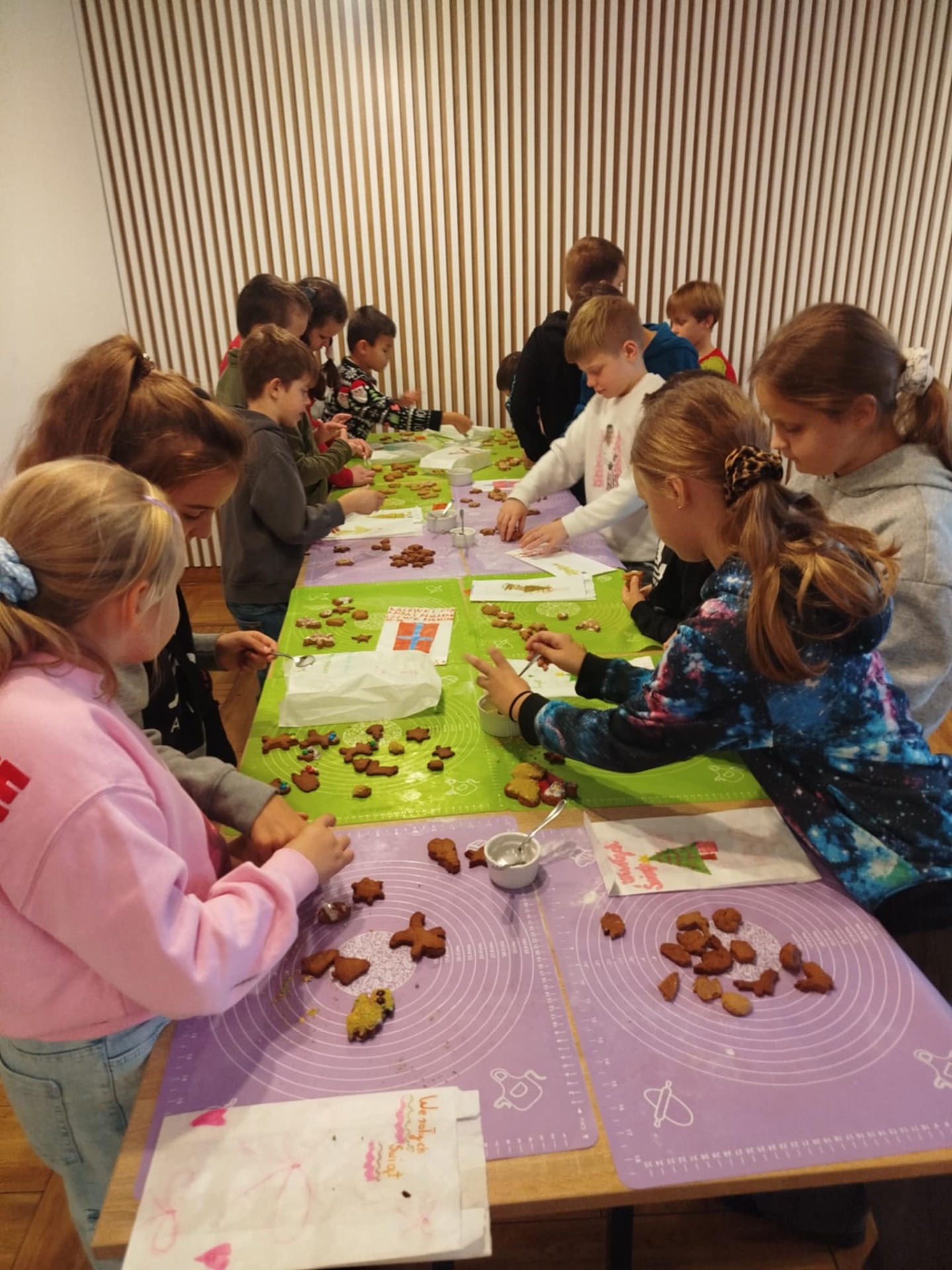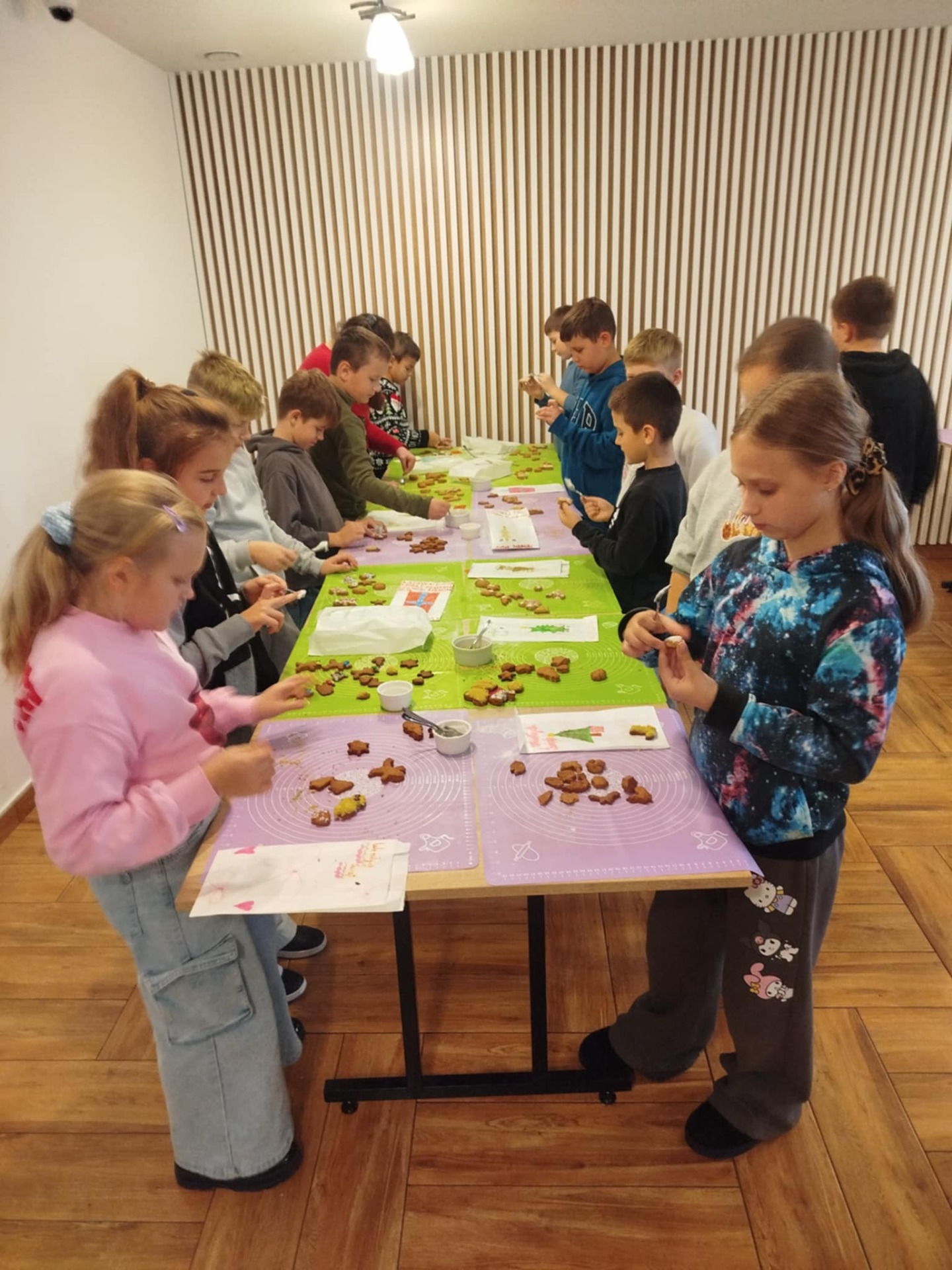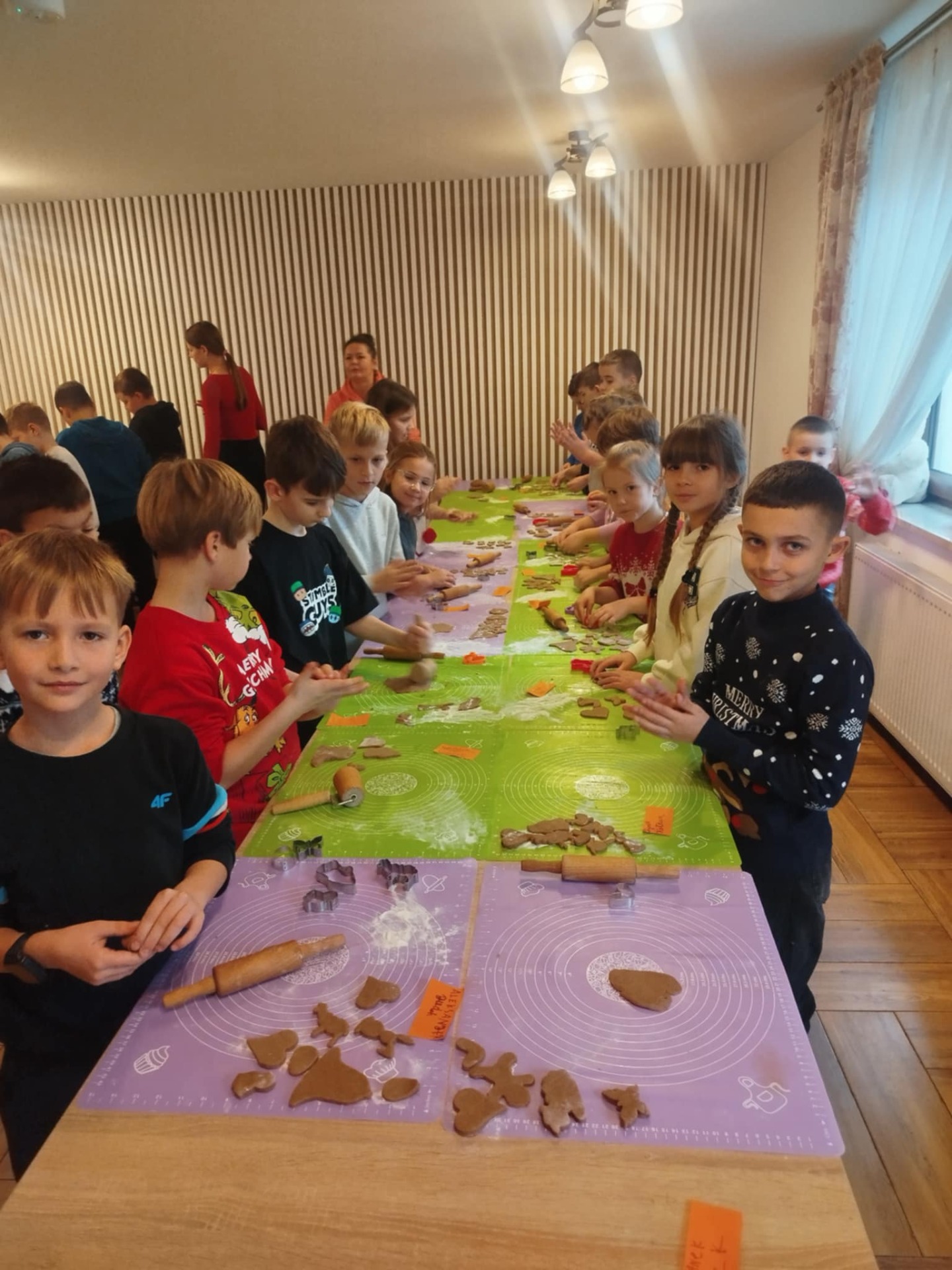 W dniu 2 grudnia uczniowie klas 1-3 Szkoły Podstawowej, pod opieką wychowawców udali się do Gospodarstwa Agroturystycznego „Madejówka” w Obojni. Pani Agnieszka – właścicielka, powitała wszystkich serdecznie i opowiedziała dzieciom o tradycjach i zwyczajach zbliżających się Świąt Bożego Narodzenia oraz przeprowadziła quiz sprawdzający wiedzę dzieci, na temat zbliżających się świąt. Następnie odbyły się warsztaty świąteczne, dzieci pisały listy do Mikołaja oraz przygotowywały pierniki, dekorując je kolorowymi posypkami i lukrem. Pani Agnieszka, zaprosiła dzieci na spacer po Zagrodzie. Miały wówczas okazję zobaczyć i nakarmić konie, kozy, strusie oraz małe źrebaki. Wiele radości sprawił dzieciom Mikołaj, który wręczył każdemu prezent w postaci czekolady. Spotkanie z Mikołajem , to było wspólne kolędowanie w miłej atmosferze świątecznej. Kolejnym punktem programu , był poczęstunek ciastem i tradycyjnym pierogami. Zajęcia w Zagrodzie Edukacyjnej, w tak miłej i radosnej atmosferze, to piękna lekcja tradycji, która przypomniała wszystkim o zbliżających się Świętach Bożego Narodzenia.