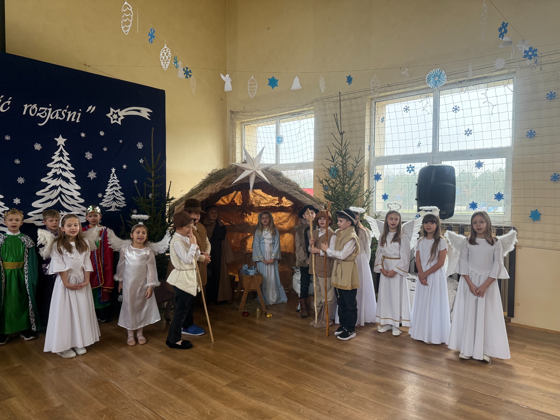 Święta Bożego Narodzenia są dla nas wszystkich szczególnym przeżyciem. To najpiękniejsze i najbardziej oczekiwane święta w roku. Z tej okazji 15 grudnia w naszej szkole odbył się uroczysty apel. Uczniowie klasy 2b, 3 i 5 zaprezentowali jasełka oraz część artystyczną związaną z tradycjami i zwyczajami bożonarodzeniowymi. Piękne kolędy i pastorałki zaśpiewały dzieci z przedszkola oraz chór szkolny. Wspólne kolędowanie, recytacje i serdeczne życzenia wprowadziły wszystkich w uroczysty przedświąteczny nastrój.