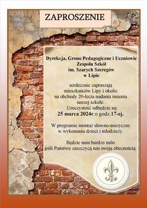 Zaproszenie na obchody 20-lecia nadania imienia...